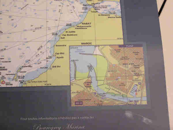 6) Entry Ports Bouregreg Marina is a port of entry; customs and immigration clearance dock on port side is just before the turn into the marina itself ATTENTION – THE MARINA WILL SEND OUT THEIR INFLATABLE TO GUIDE YOU IN TO THE CUSTOMS DOCK, AND THEN TO YOUR SLIP; CALL ON VHF 10; AVAILABLE 24/7; BEST TIME TO ENTER IS ON A RISING TIDE NEAR HIGH TIDE; we arrived at 4am in total darkness!