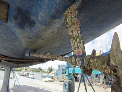 We had looked at these tools with some suspicion over the past few boat shows. Its like a hand held electric chisel, waterproof, and powered by 12 volts DC. Faced with several acres of nasties, it seemed worth a try.